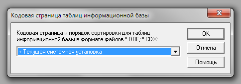 - Кодовая страница таблиц ИБ, выбираем: "+ Текущая системная установка".