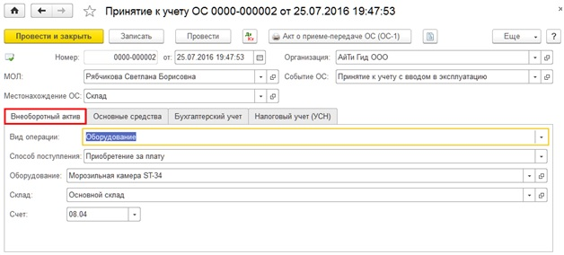 Закладка «Внеоборотный актив» заполняется стандартным образом:![]()